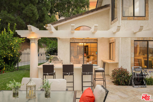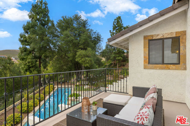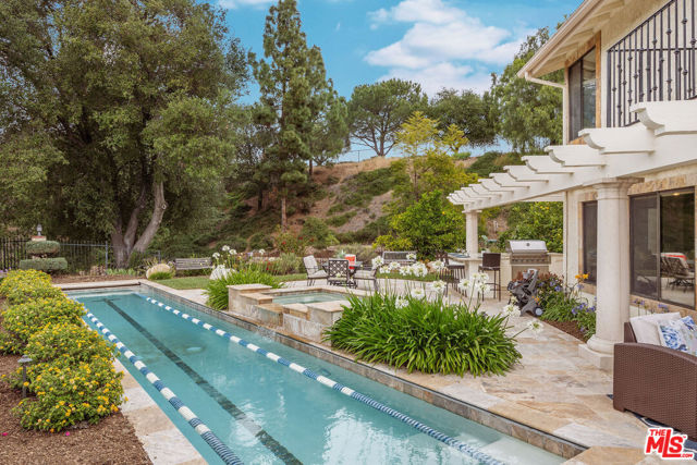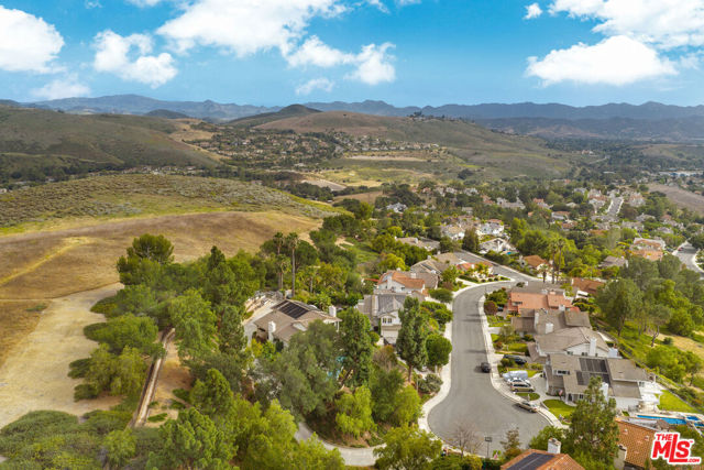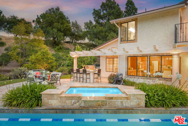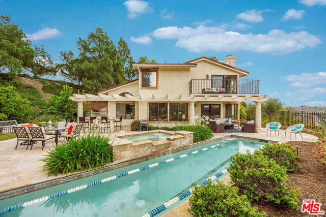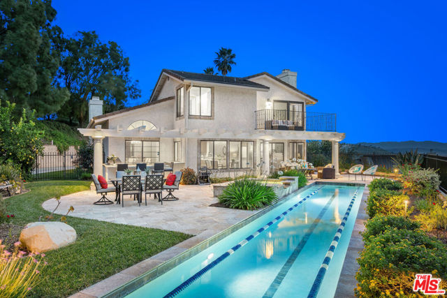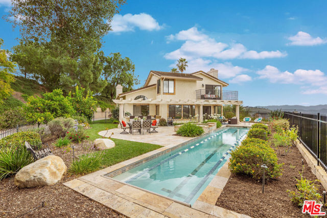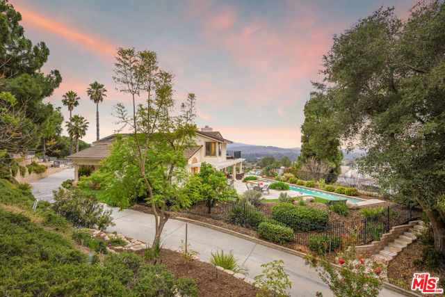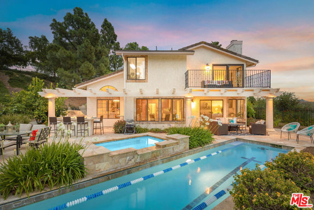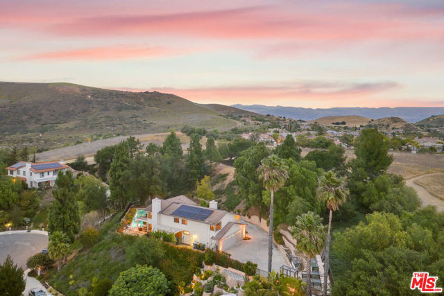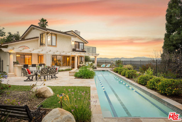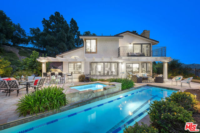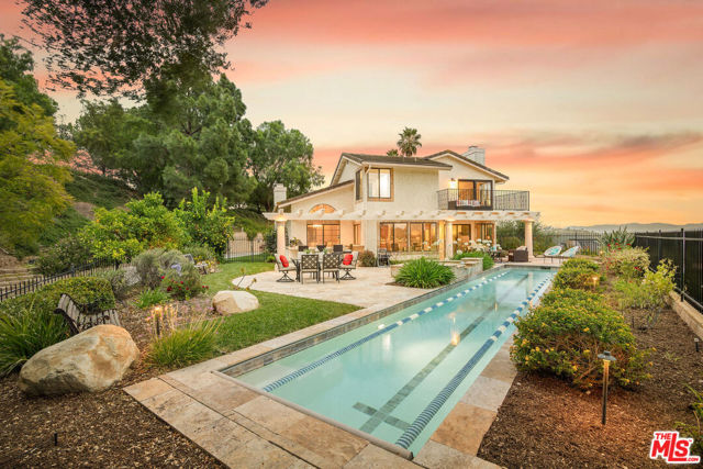 Perched high above the Conejo Valley in one of the most private settings Thousand Oaks has to offer, this extraordinary view estate at Whitechapel Place is a once-in-a-generation opportunity. For the first time in 28 years, a property combining breathtaking panoramic views, remarkable privacy, and true usable living space returns to the market. When the home was originally offered for sale, it received eight offers in its very first week, and it is easy to understand why. Situated on an expansive 0.64-acre lot backing to open space, this 4-bedroom, 3-bathroom home with an oversized upstairs bonus room offers approximately 2,728 square feet of thoughtfully designed living space. The flexible floorplan features one full bedroom and bathroom downstairs, ideal for guests, extended family, or a private office, while upstairs offers three additional bedrooms along with a large bonus room perfect for a game room, media room, playroom, gym, or additional living space. Nearly every window captures stunning views stretching across the Conejo Valley, framed by native oak trees and highlighted by peekaboo ocean and Catalina Island vistas. Enjoy unforgettable nightly sunsets, glowing sunrises over the valley skyline, and front-row seats to Fourth of July fireworks displays from the comfort of your own backyard. The resort-style grounds are equally impressive. A beautiful lap pool with elevated spa creates the perfect setting for relaxation or entertaining, all surrounded by unmatched serenity and complete privacy rarely found in the Conejo Valley. Multiple expertly designed vegetable gardens with protective fencing allow for sustainable living while blending naturally into the landscape. Citrus trees and mature natural surroundings further enhance the property's tranquil atmosphere. Additional features include a three-car garage, owned solar system with Enphase backup battery banks, newer heating and air conditioning systems, a tankless water heater, and a setting that feels worlds away while remaining close to everything Thousand Oaks has to offer. This is more than a home. It is a private retreat with some of the most spectacular and unobstructed views in the Conejo Valley. Properties like this rarely become available.