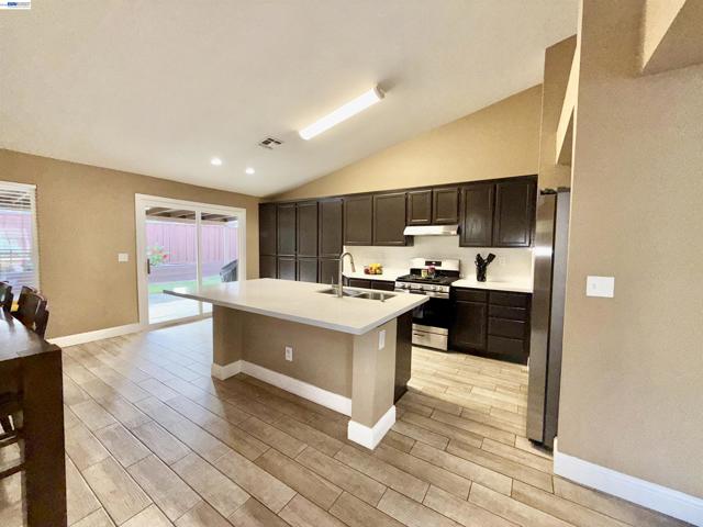 Welcome to this well-maintained home in Weston Ranch offering 1,612 sq. ft. with 4 bedrooms and 2 bathrooms. Featuring tile flooring throughout and newer interior and exterior paint, this home is both stylish and low maintenance. The kitchen includes quartz countertops, a center island, and ample cabinet space. Enjoy a 3-car garage and beautifully landscaped front and backyard with several fruit trees and a covered overhang-perfect for relaxing in any season. Custom side gates add extra convenience. Designed for comfort living and everyday convince-come see it for yourself!