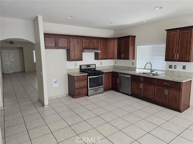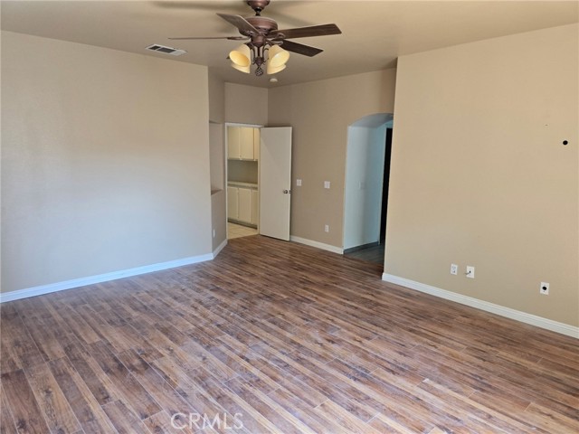 Spacious single story, Featuring huge living room and dining area. Home has upgraded kitchen quality cabinets with granite type counters. adjacent to kitchen is large family room with cozy stack stone fireplace and lovely French Doors to low maintenance rear patio. There is easy care tile flooring in all the the main living areas. There are three bedrooms with wood look easy care flooring. The master is truly a king size room, with a ample walk in closet. upgraded walk in shower and 2 sink vanity. The property offers a 3 car garage with a triple concrete driveway. make this a must see if you are looking for a great area for a work shop because this might wor