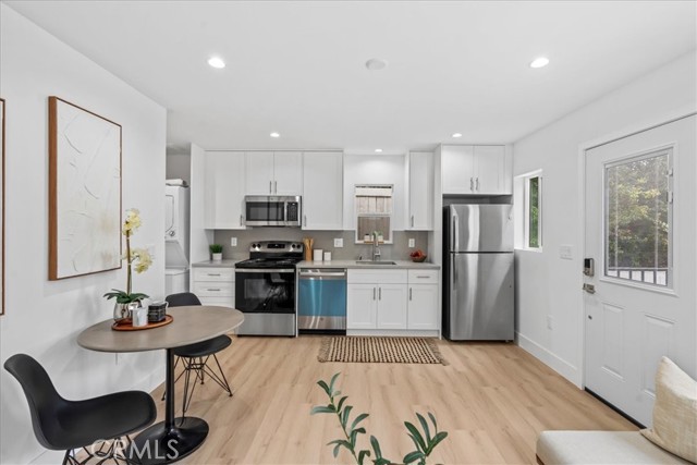 Remodeled House (2022) | 4 BD | 3 BA | 2,540 Sq Ft with new construction ADU (2025) | 1 BD | 1 BA | 433 Sq Ft --|-- A stunning, to-the-studs transformation in the heart of Westwood, this reimagined 5-bedroom, 4-bath home – with a brand-new, never-occupied ADU – delivers modern luxury and exceptional craftsmanship at every turn. Spanning nearly 2,983 sq ft, the residence blends architectural timelessness with the performance of a modern build. The sun-drenched, vaulted living room creates an immediate sense of volume. The open-concept chef’s kitchen is anchored by a large social island, custom cabinetry, Thermador appliances, and a charming breakfast nook. The main level is completed by an inviting family room, formal dining room, and a flexible bedroom ideal for a private office, gym, playroom, or guest suite. Upstairs, the sophisticated primary suite features expansive windows and a dramatic double-sided fireplace. Its spa-inspired bath has all the features, boasting a soaking tub, smart-touch shower system, towel warmer, and Toto bidet toilet. Outdoor living extends the home’s serenity with a vine-covered patio and a curated edible orchard—including Pineapple Guava, Passionfruit, Ice Cream Bean, Oroblanco Grapefruit, and Little Cado Avocado. A ground-up, detached ADU with its own address and private entrance offers unmatched versatility. Significant infrastructure investments provide total peace of mind: a new roof, windows, plumbing, electrical, CAT-6 wiring, multi-zone HVAC with central A/C, earthquake retrofitting, and enhanced drainage systems. Includes an expanded driveway with EV charging. Perfectly positioned moments away from UCLA, Century City, and Beverly Hills as well as being close to award-winning schools, including an easy walk to Fairburn Elementary. For a deeper look into the meticulous renovation journey, search Google for “1320 Thayer Renovation.”