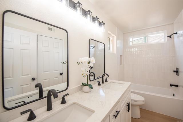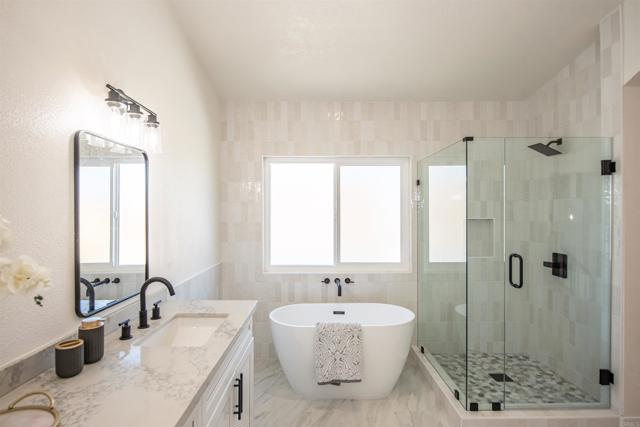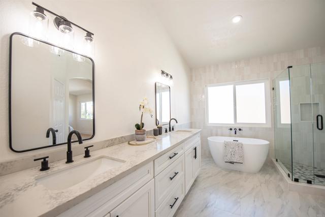 Welcome to 2038 Ridgeline, a beautifully remodeled 4-bedroom, 3-bathroom home nestled in the highly desirable Shadowridge community. Situated on a quiet cul-de-sac with a spacious lot, this light-filled residence showcases soaring vaulted ceilings and a thoughtfully designed layout perfect for modern living—including a convenient main-level bedroom and full bathroom. Step inside to discover a bright and open interior featuring a formal living and dining room, seamlessly flowing into a stunning, fully updated kitchen that opens to the family room. The kitchen is a true showstopper, boasting all-new soft-close cabinetry, sleek quartz countertops, and brand-new appliances—ideal for both everyday living and entertaining. Extensive upgrades throughout the home include new luxury vinyl flooring, dual-pane windows, recessed lighting, fresh interior paint, a new heater and A/C system, and a new water heater. All bathrooms have been completely remodeled with stylish new vanities, updated countertops, and floor-to-ceiling tile. The Jack-and-Jill bathroom features a deep soaking tub, while the downstairs bath includes a newly updated shower and vanity. The roof was also recently redone. Enjoy the benefits of NO HOA and an unbeatable location just a short walk to Buena Vista Park, scenic trails, a dog park, and a peaceful duck pond. You’re also just minutes from Carlsbad, Bressi Ranch, and only 15 minutes from the beach—offering the perfect blend of tranquility and convenience. Shadowridge is known for its lush landscaping, rolling hill views, and welcoming atmosphere, making it one of Vista’s most sought-after neighborhoods. This home truly has too many upgrades to list and must be seen in person to be fully appreciated.