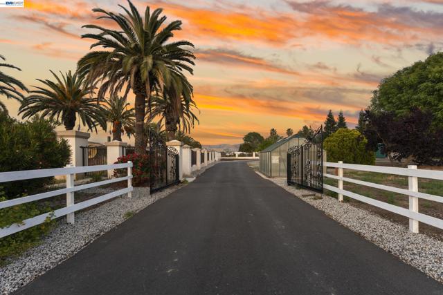 A once-in-a-lifetime opportunity for forever living in South Livermore. Find yourself surrounded by all that South Livermore Winey Country has to offer. An area deep in agriculture, viticulture and equestrian tradition. This generational property is one that can check many of your boxes. A private, gated estate with multiple living options for home or hobby...for years to come. The custom built Hacienda style home offers a grand welcome with soaring ceilings and room for hosting events or family gatherings. Every detail of this home was intentional and detailed. The resort style pool with covered outdoor kitchen, water slide and malibu shelf lends itself to ultimate fun and relaxation. Indulge all your senses in the primary bathroom with a steam shower and dry sauna, with views of vineyards for days! With recent irrigation improvements the garden, orchard and greenhouse are ready for the greenest of thumbs! And don't forget the horses! Originally built as a cutting horse facility, this property includes ample room for tack storage, horse training/exercise, trailer/RV storage and more! There is so much to share about this property, you have to see it to believe it! Come live your Livermore legacy in South Livermore.