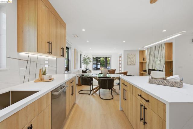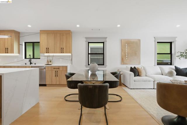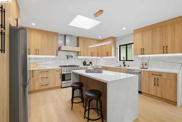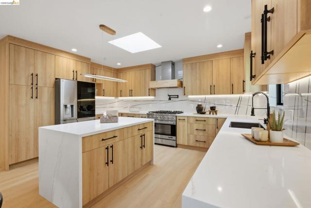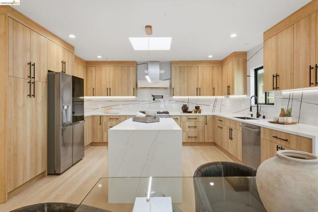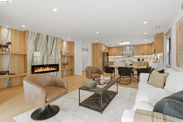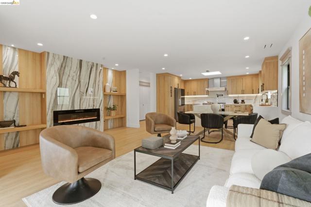 Welcome to 611 Norvell St—a beautifully reimagined 3-bedroom, 3-bath residence where timeless comfort meets modern convenience. Completely renovated with permits, this move-in-ready home showcases quality craftsmanship, thoughtful upgrades, and stylish finishes designed for today’s lifestyle. Step inside to discover a bright, welcoming interior enhanced by wide-plank SPC flooring, recessed lighting, and smart-home features, including a smart thermostat for year-round efficiency and comfort. The living space is anchored by a stunning electric fireplace wrapped in an elegant Italian porcelain slab, creating a sophisticated focal point that blends warmth, texture, and contemporary design. The heart of the home is the light-filled kitchen, highlighted by a skylight with a remote-controlled retractable shade that lets you tailor the ambiance at the touch of a button. A custom island anchors the space with pop-up power outlets and built-in USB connections—perfect for meal prep, casual dining, or working from home while staying connected. The kitchen is further elevated by sleek stainless steel appliances, including a striking 36-inch gas range designed for both everyday cooking and entertaining. Modern finishes and thoughtful functionality make this kitchen a true centerpiece of the home. The spacious primary suite offers a serene retreat, complete with wireless Bluetooth integration that brings music and relaxation into your daily routine. Each of the three bedrooms and three updated bathrooms has been thoughtfully designed with comfort and flexibility in mind, providing ample space for family, guests, or a dedicated home office. Enjoy seamless indoor-outdoor living as you step onto the solid mahogany deck—an inviting space ideal for weekend brunch, evening gatherings, or quiet mornings surrounded by fresh air. Every detail of the renovation has been completed with permits, offering both peace of mind and long-term value. Beyond the home, the location delivers exceptional convenience. You’ll enjoy close proximity to shopping, dining, and daily essentials at El Cerrito Plaza, along with easy commuting options via El Cerrito Plaza BART station. This prime setting combines neighborhood charm with accessibility, making it easy to enjoy everything the East Bay has to offer. Stylish, smart, and thoughtfully upgraded, this fully renovated home is ready to welcome its next chapter.
