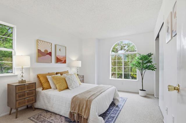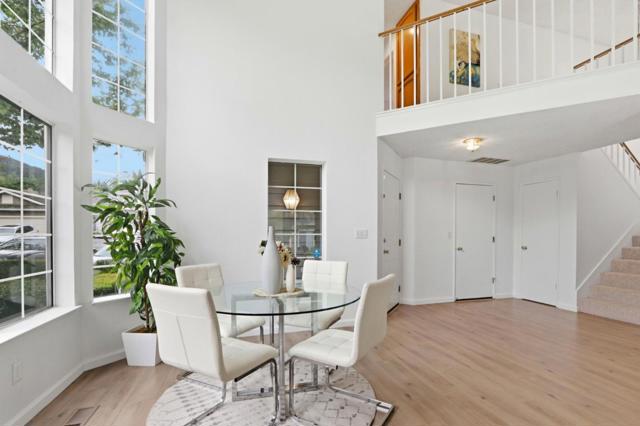 Prestigious California Ridge home nestled in a scenic rolling hill setting, surrounded by luxury custom residences. This desirable end-unit property offers the privacy and feel of a single-family home and is ideally situated on a quiet cul-de-sac adjacent to a greenbelt, with convenient guest parking nearby. Featuring 3 bedrooms and 2.5 bathrooms, this home showcases impressive high ceilings and a flexible, open floor plan. The space off the kitchen can be used as a dining area or cozy den, while the expansive living area allows for a combined living and dining layout. Sliding glass doors from both the living and dining areas open to a private patio overlooking a large green lawn, creating seamless indoor-outdoor living. Recent updates include fresh interior paint. Additional highlights include a 2-car attached garage and abundant natural light throughout. Located near Quicksilver Park and Almaden Lake, with easy access to shopping, dining, and major commute routes. Served by highly rated Almaden Valley schools, including Williams Elementary, Bret Harte Middle, and Leland High School.
