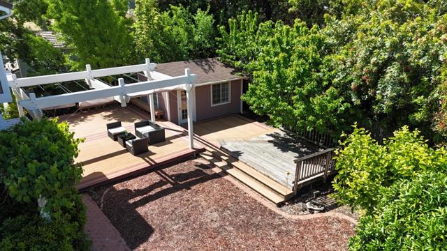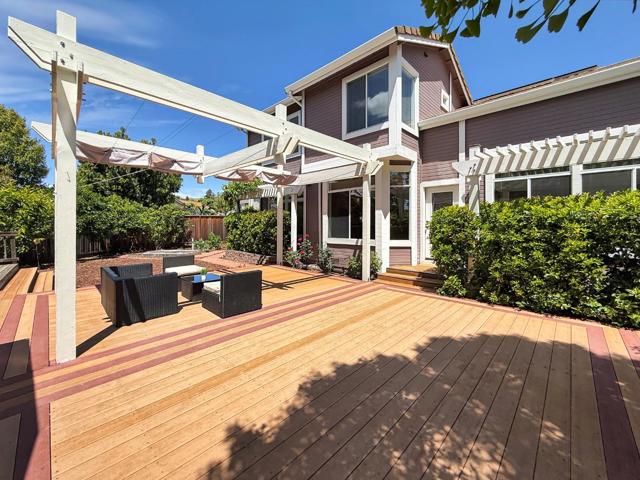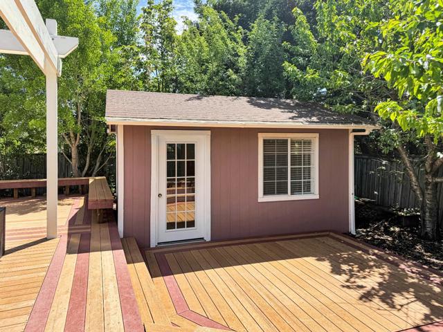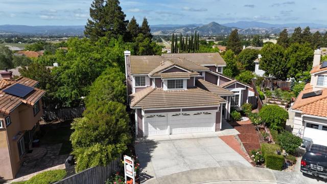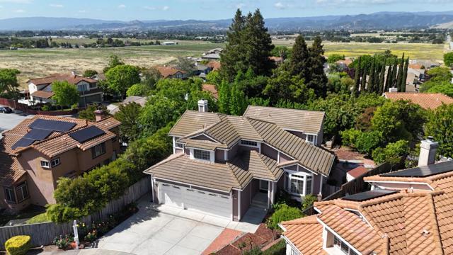 Welcome to Jackson Meadows in the Morgan Hill foothills! This beautifully maintained 4BR/3BA home offers 2,475 SF of living space on a premium 7,840 SF flat lot tucked away on a quiet cul-de-sac. Enjoy a private backyard retreat with mature fruit trees, plus a large engineered wood deck with covered patio perfect for entertaining. Inside features formal living/dining, breakfast nook, separate family room with fireplace, built-in shelves/desks, and a spacious kitchen with island, gas cooktop, double oven, and more. A permitted 192 SF powered shed is ideal for an office, gym, or studio. Upgrades include owned solar with smart controller, smart thermostats, 240V Level 2 EV charger, central A/C, and 3-car garage. Located in the Morgan Hill Unified School District near parks, trails, and commuter routes. The home is being sold AS IS.