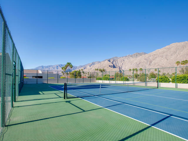 Ground floor end unit in a sought-after community located a few blocks from the active downtown area. This architecturally significant complex, designed by Hugh M. Kaptur, is a strong investment. Make it your primary home or weekend getaway. Seasonal 30-day minimum rentals are also a possibility. Enjoy the large community pool and spa, racquetball court, tennis/pickleball court, meeting room, and dog release area. The unit is conventionally located near the pool and parking. The kitchen has updated countertops, appliances, and lighting. Large living room/dining area with patio access and mountain view. Both bedrooms are spacious, and the bathrooms are upgraded.The patio also has a full-sized laundry room and a pedestrian gate for easy access to your assigned carport parking spot. Take advantage of being able to quickly make your way downtown and enjoy restaurants, shopping, theatre, casino, and activities. The airport is just a few minutes away. HOA dues of $595 includes: earthquake insurance, water, sewer, and trash. Land lease runs to year 2080 at $305 a month(paid quarterly).