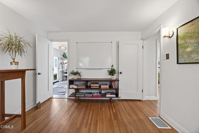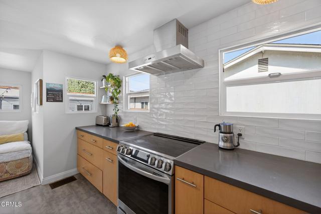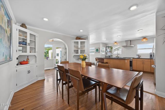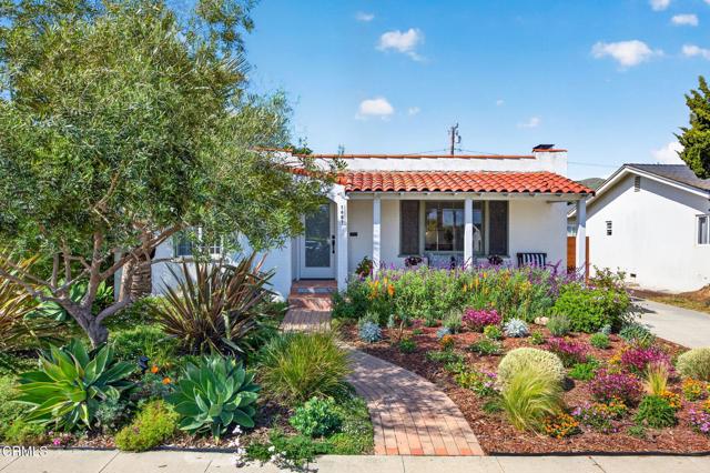Ideally located in one of Ventura's most desirable neighborhoods, this beautiful Spanish charmer blends timeless character with thoughtful modern updates. The inviting 3-bedroom, 2-bath residence showcases lovely original hardwood floors, sun-drenched living spaces, and a warm, welcoming layout designed for both everyday comfort and effortless entertaining. At the heart of the home is a beautifully remodeled kitchen featuring custom finishes, an open-concept design, and a sunny breakfast nook perfect for slow mornings and coffee-filled starts to the day. Both bathrooms have been tastefully redesigned, honoring the home's classic style while adding fresh, elegant touches. Step outside to a truly magical, park-like backyard that has been lovingly re-landscaped into a private retreat. Enjoy a custom pergola, relaxing hot tub, hillside views, and an abundance of mature fruit trees including avocado, lemon, Mexican lime, pomegranate, persimmon, tangerine, and orange. A versatile detached studio offers endless possibilities as a home office, art studio, yoga sanctuary, or fitness space. Perfectly positioned in the heart of the neighborhood, this special property offers the very best of Ventura living, just moments from the beach, vibrant downtown, terrific schools and scenic Ventura Land Trust hillside trails. Enjoy beloved local favorites just around the corner, including Singing Sun Coffee, Prospect Coffee, Ficelle Bakery, Luke's, Valentino's, Buddies Wine Bar, and so much more. A home filled with beauty, warmth, and cherished memories ready for its next chapter!