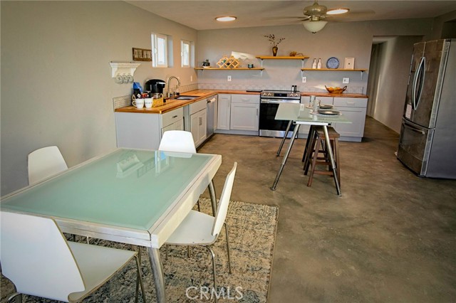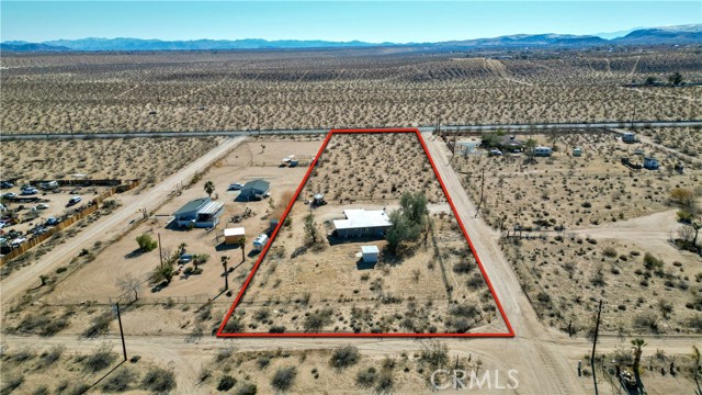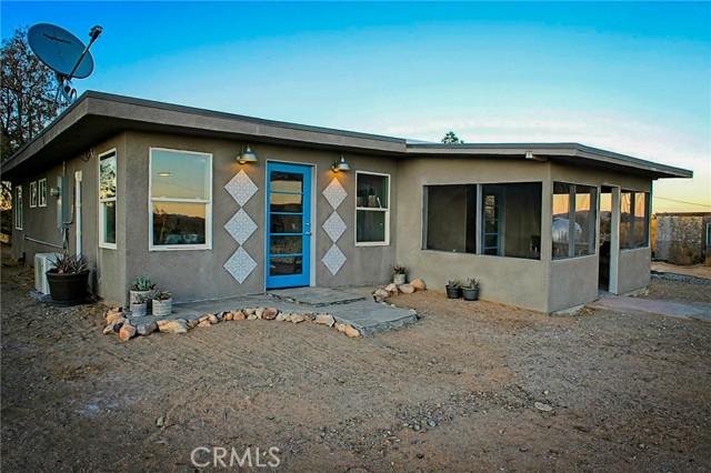Make your dreams come true in this stunning desert home, thoughtfully redesigned for ultimate comfort and style. Featuring three HVAC split units, dual pane windows, new foam roof, and fresh stucco siding, this home is move-in ready with public water and electric. With all-electric systems in place, it’s also primed for solar or can easily accommodate a 50-amp plug for a generator. The property has been completely rewired and replumbed, offering peace of mind and modern living. Inside, you’ll find polished concrete floors, plaster walls and ceilings, paired with designer touches throughout. This home blends chic sophistication with everyday practicality, making it perfect for an Airbnb or your own private retreat. The open-concept kitchen and great room flow seamlessly into an airy, bright living room, while the large and inviting bedrooms provide plenty of space for relaxation. There is also the possibility of a 3rd bedroom. For added convenience, there’s a spacious utility room with washer and dryer hookups, plus a 1/2 bath. Situated on 2 1/2 acres of horse-friendly land, the property also includes a possible tack room and an additional outbuilding that’s currently used as a workshop. With trails and dirt roads right outside your door, you can walk, ride, or explore to your heart’s content. Seller will also provide a 1 year home warranty. Nearby, discover the beauty of Gubler Orchids greenhouses, the soothing sound baths at the Integratron, and the laid-back atmosphere at Giant Rock Meeting Room with live music and casual bites. Enjoy gourmet dining at La Copine or grab a slice at $5 Pizza for a truly unforgettable experience. For a more adventurous outing, head to Pioneertown for a visit to Pioneer Bowl, Pappy and Harriet’s, Red Dog Saloon, and unique shops and art galleries. On weekends, Joshua Tree Village is buzzing with local artists, farmers markets, live music, and delicious dining. Plus, the world-famous Joshua Tree National Park is just a few miles away. Join the vibrant and creative community of Landers and make this one-of-a-kind home yours!
