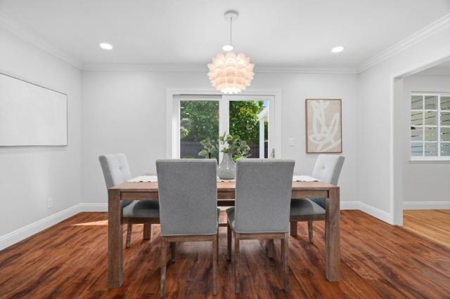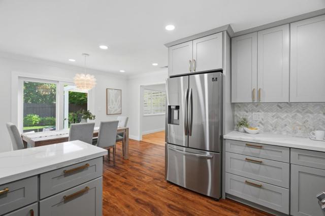 Move-in ready 3-bedroom, 2-bath home with fresh interior paint and hardwood floors throughout. The spacious kitchen features quartz countertops, a designer tile backsplash, gold accents, newer appliances, and a generous dining area ideal for everyday living and entertaining. Both bathrooms have been updated with clean, modern finishes. The large backyard is designed for enjoyment, featuring new sod, raised vegetable beds, and string lighting, creating a great space for weekend BBQs, outdoor dining, and relaxed evenings under the stars. Natural light fills the home, creating a comfortable flow from morning to evening. Located on a quiet, community-oriented street with convenient access to The Pruneyard Shopping Center, nearby parks, and San Tomas Expressway for commuting. Situated within an award-winning school district. Well maintained with pride of ownership throughout.