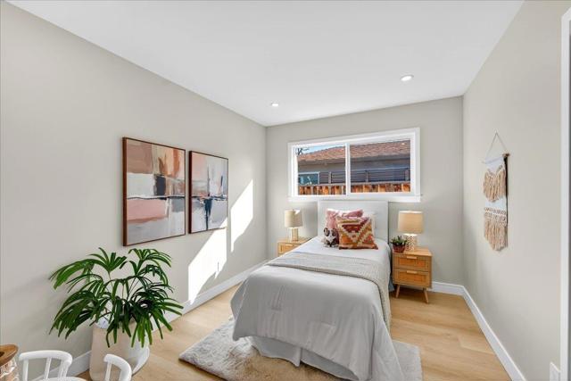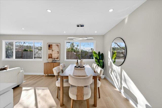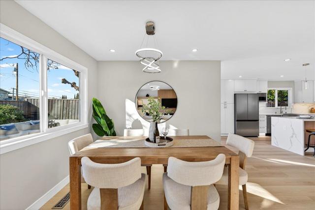 Located in San Jose, this 1,640 sq. ft. home offers a spacious 6,000 sq. ft. lot with four bedrooms, including more than one primary bedroom on the ground floor. The kitchen features modern amenities such as a dishwasher, microwave, electric oven range, refrigerator, quartz countertops, and an island, seamlessly connected to the family room with a dining area. The family room also includes a fireplace, creating a cozy atmosphere. Flooring throughout the home is laminate, and bathrooms are equipped with double sinks and tile finishes. Additional highlights include central forced air heating, central AC cooling, and energy-efficient features like insulated walls, Energy Star appliances, and double pane windows. Laundry facilities are located in the garage, complete with a 220V electricity hookup. The property includes a two-car garage and is situated within the Oak Grove Elementary school district.