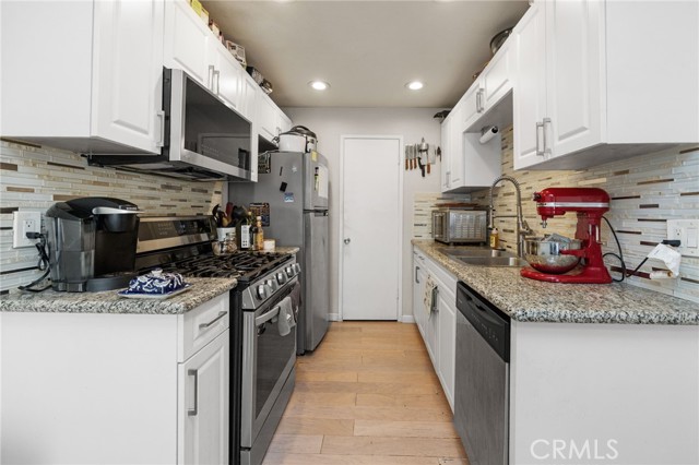 Welcome to 1336 Brentwood Circle in Corona! This beautifully updated 2-bedroom, 2-bath home offers 1,095 sq ft. of comfortable living space in a desirable community. Step inside to find a bright and open layout featuring gray laminate flooring, neutral paint tones, and modern finishes throughout. The kitchen is equipped with granite countertops, stainless steel appliances, and ample cabinet space. It has central air and heat. The spacious primary suite includes a walk-in closet and a private bath. At the same time, the second bedroom provides excellent flexibility for guests or a home office. From the living room, there is a nice-sized patio to entertain family and friends. Enjoy access to the community pool, well-maintained grounds, and a convenient on-site laundry facility directly under the unit, where you may place your own washer and dryer. It has two covered parking spaces. Close to shopping, dining, parks, and easy freeway access, this home combines comfort, style, and convenience in one perfect package.
