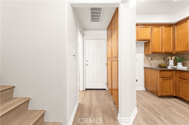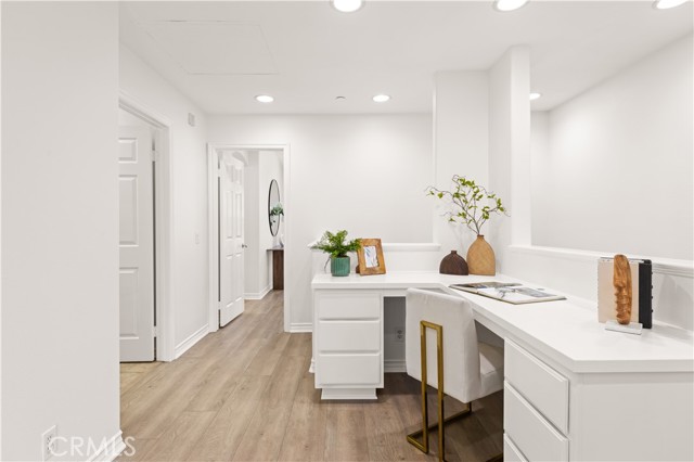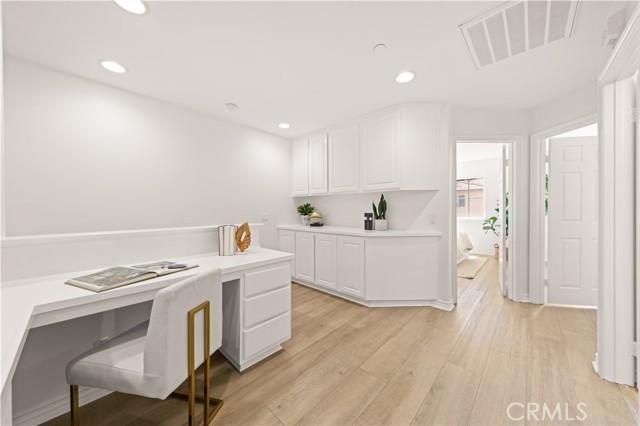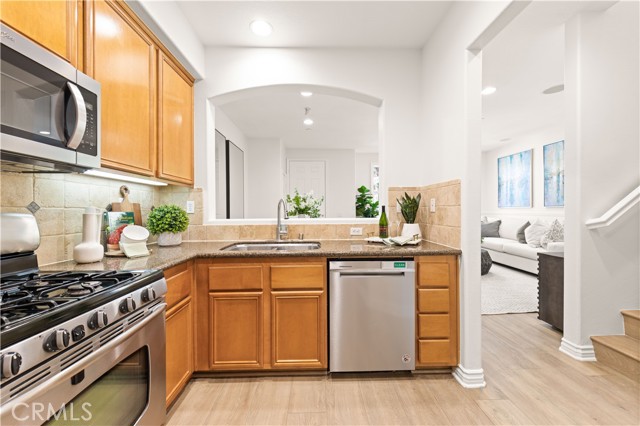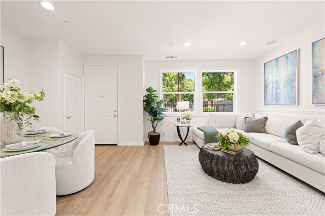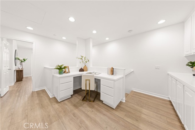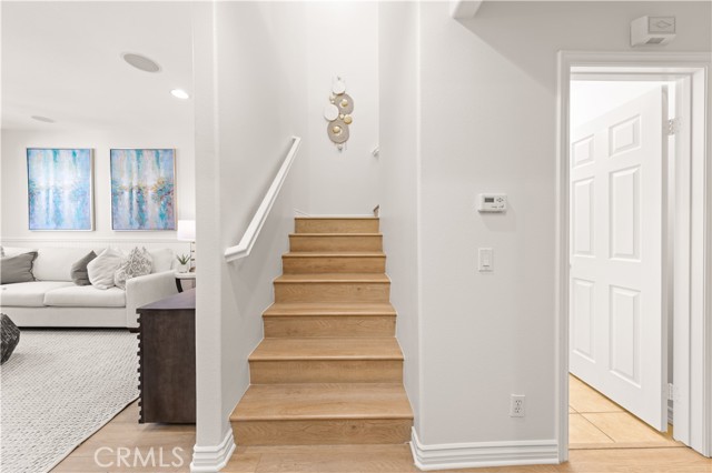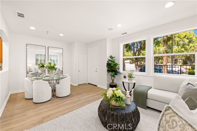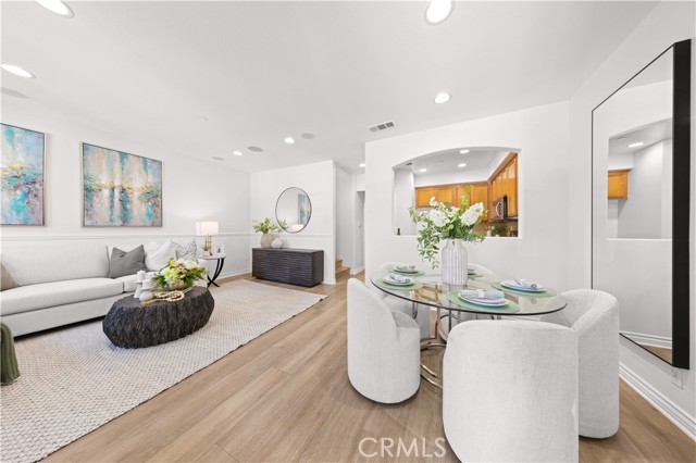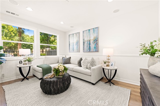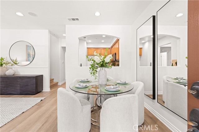 Ideally situated in a desirable Irvine community, this well-designed two-story townhome offers an excellent opportunity for comfortable living with strong value. Positioned directly facing the community park and pool, the home enjoys an open setting and a pleasant, functional location. A private front yard adds charm and provides a welcoming outdoor space. The main level features an efficient and practical layout, connecting the living room, dining area, and kitchen in a cohesive flow that supports everyday living. A convenient powder room completes the first floor. Upstairs, a built-in desk area creates a dedicated workspace, complemented by additional cabinetry for extra storage. The primary suite includes a well-appointed bathroom with dual vanities, a shower-over-tub combination, and a walk-in closet. Two additional bedrooms are well-sized and versatile, along with a full laundry room conveniently located on the same level. Thoughtfully designed to maximize usability, the home offers a complete and functional living experience within a manageable footprint. Located within walking distance to a highly rated 10/10 high school, and just steps from parks, the pool, and community amenities, this home delivers exceptional convenience in a neighborhood known for its safety and quality of life. With its inviting outdoor space, flexible layout, and prime location, this residence offers a warm, polished living experience tailored to modern Irvine living.