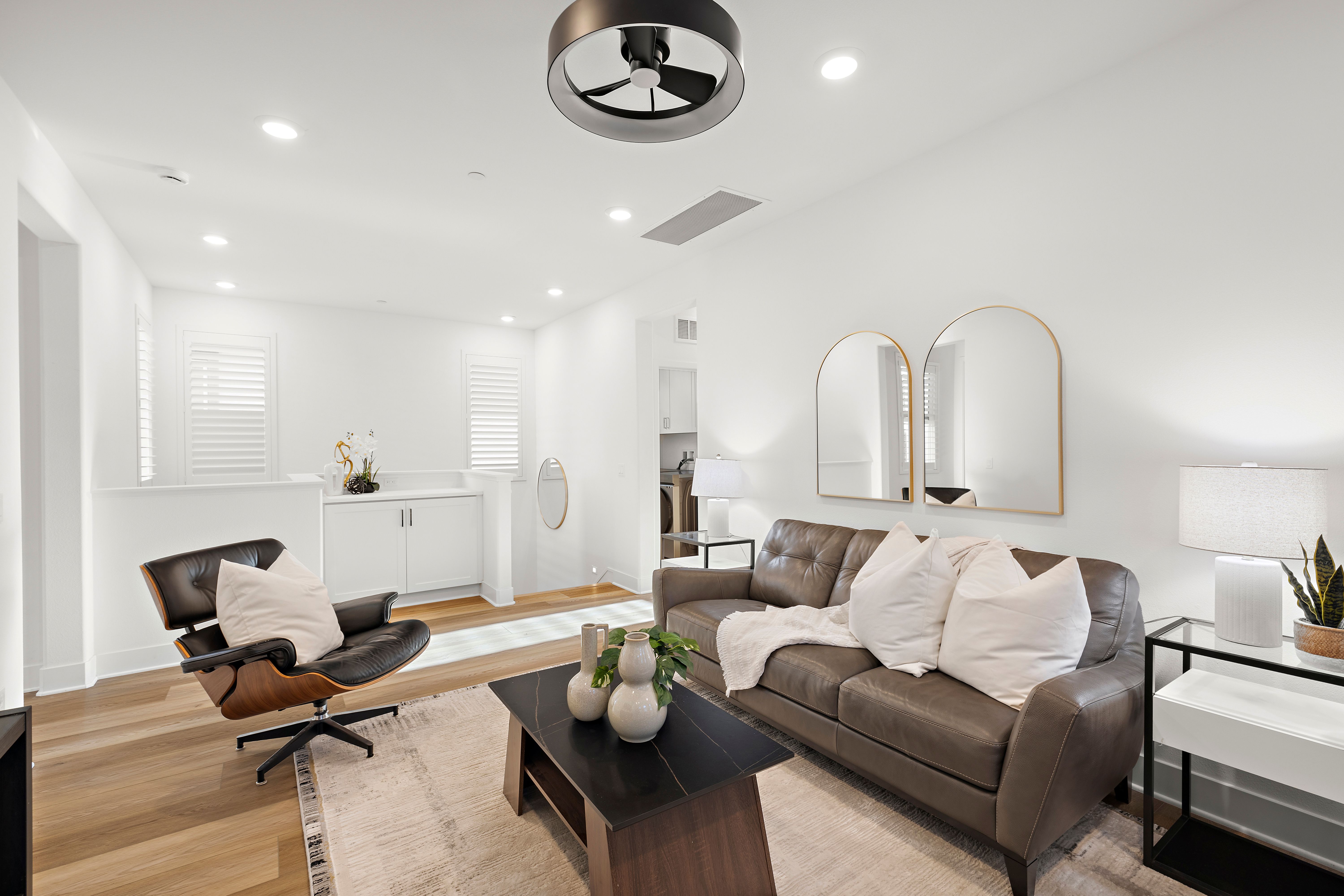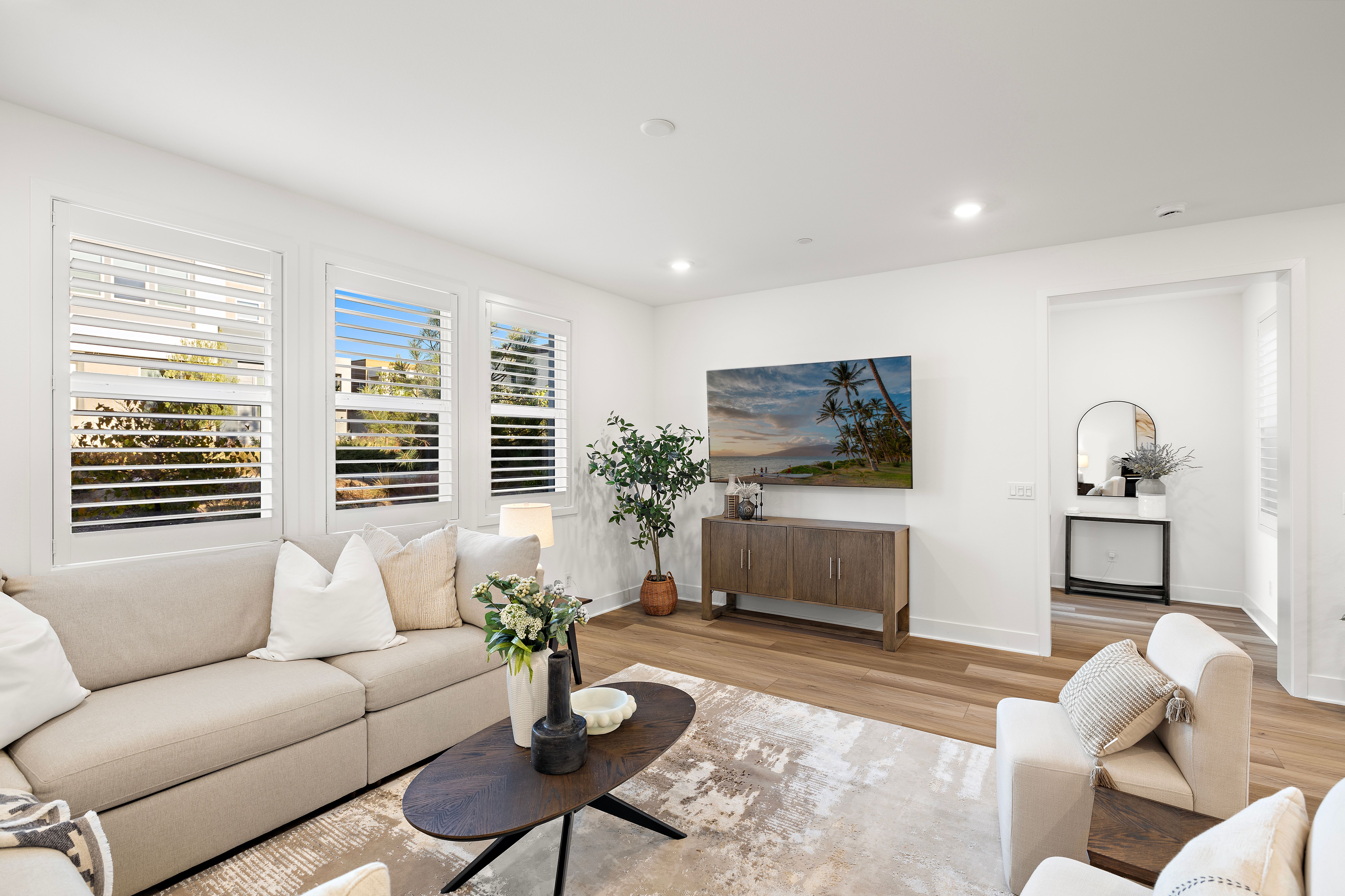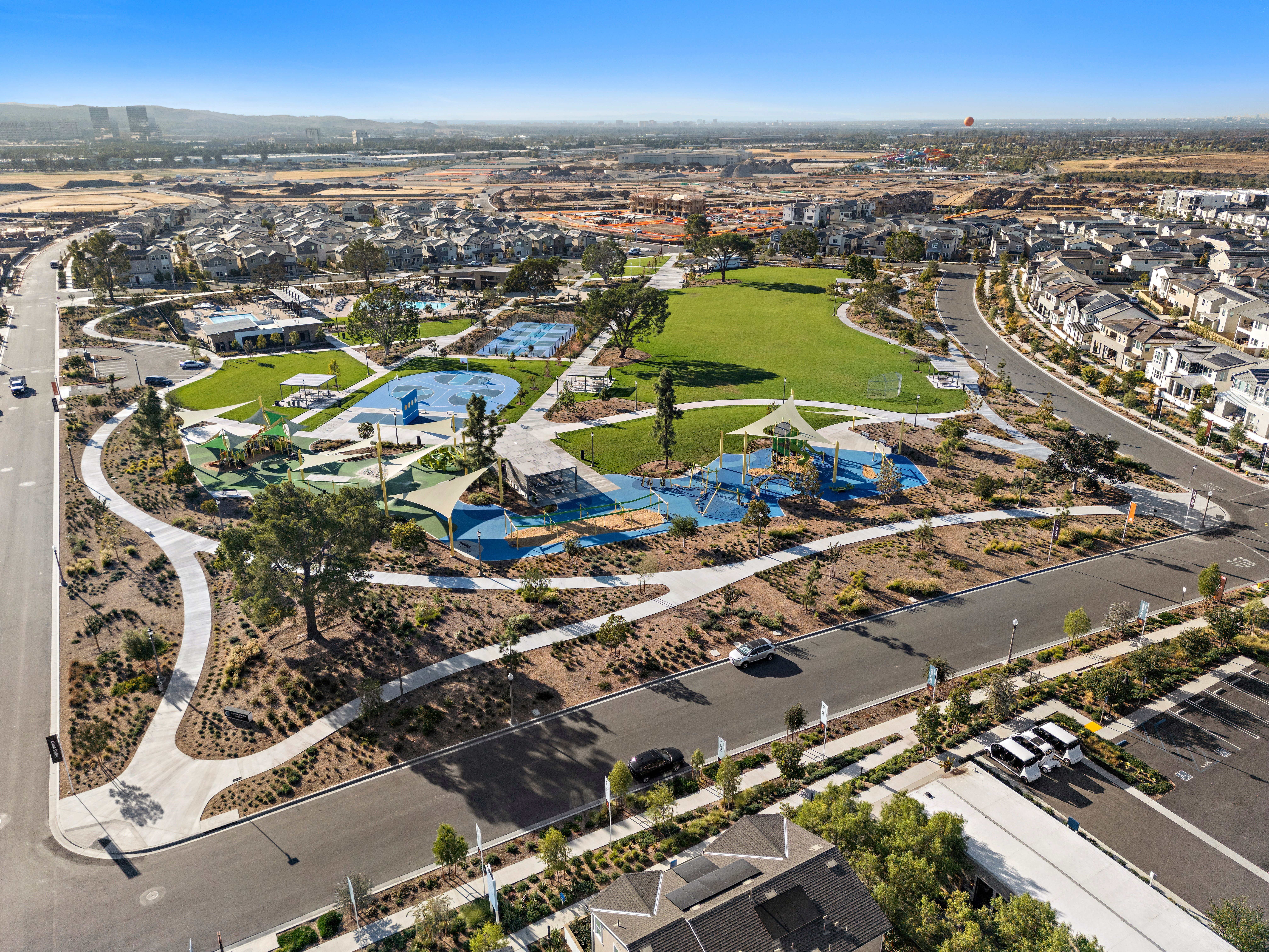 Find your retreat in this beautiful newly built home in the heart of Irvine's Great Park. Offering three bedrooms upstairs and a spacious loft there is ample room for all to unwind. The light-filled home features wide-plank LVP flooring and plantation shutters grace the home with an elegant upscale touch. Entering the home, the expansive downstairs provides an exceptional space to gather the family or entertain guests. The kitchen boasts a large island, high-end GE monogram appliances with a built-in fridge, quartz counters and a plethora of cabinets. The chef will enjoy the modern amenities this kitchen provides all while truly being at the heart of the home. From downstairs, the views of the landscaped greenery creates the privacy rarely found in the community. Upstairs the primary suite captures stunning mountain views, while two secondary bedrooms and a generous loft offer flexibility. Unique to this home is the dual side yards. One provides the space to relax and gather while the other is great for things ideally out of sight. Additional highlights to this floorplan, the large garage gives generous storage options. The home has an unbeatable location with walking distance to highly rated k-12 schools. Living in the award-winning Great Park Neighborhood, gives access to incredible amenities including resort-style pools, clubhouses, sports courts, playgrounds, parks, trails and year round community events. Conveniently located near entertainment, shopping and the fwy's and tolls. This is a rare opportunity to own a beautiful home uniquely positioned in one of Irvine's most desirable